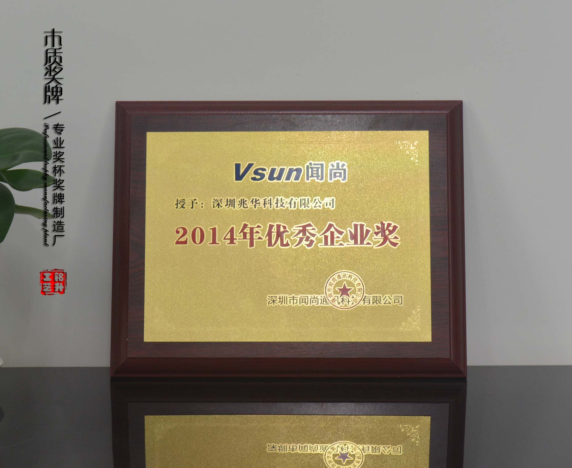 红木贴金属奖牌,