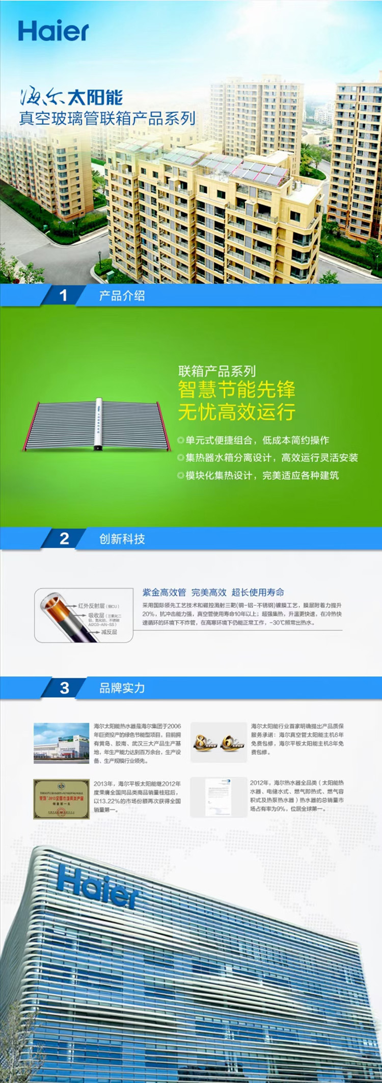 品牌 | 海尔太阳能 | 产品名称 | 联箱太阳热水器 |