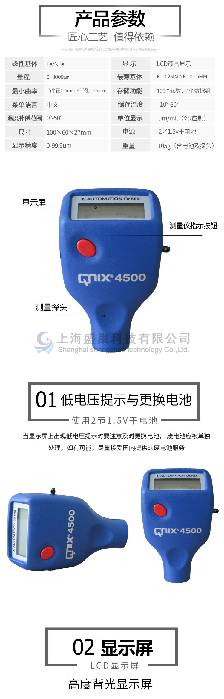 重量 105g(含电池及探头)