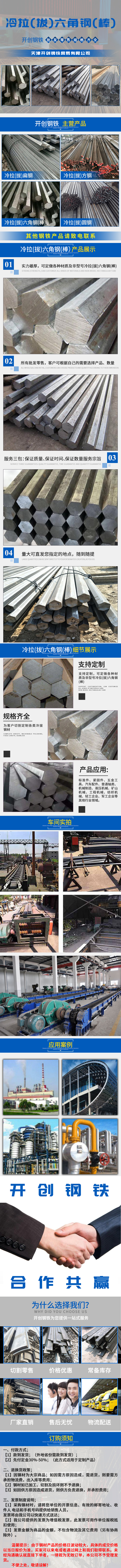 【天津开创钢铁贸易有限公司】是专业生产销售冷拉(拔)圆钢、冷拉(拔)方钢、冷拉(拔)扁钢、冷拉(拔)六角钢(棒)等冷拉异型钢,并可定做各种材质规格的冷拉产品。冷拉产品材质:A3、20号、25号、40号、45号、20Cr、40Cr、16Mn、Q355A
