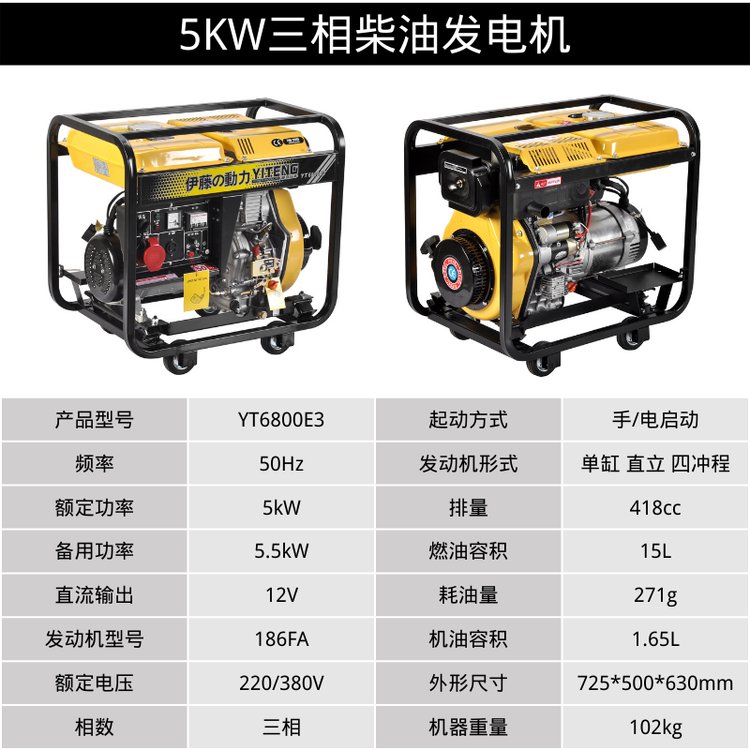 伊藤动力YT6800E3三相5KW柴油发电机380V户外工矿救援抢险