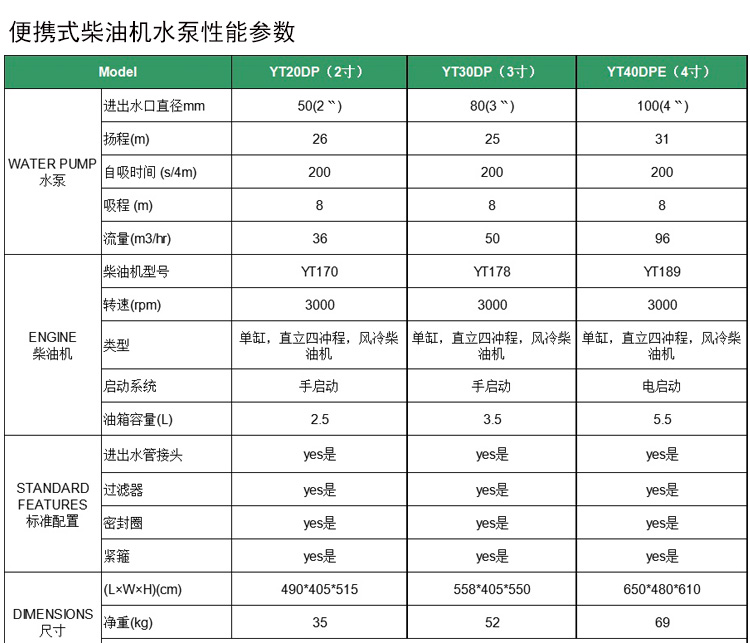伊藤动力小型2寸柴油机水泵YT20DP应急防汛灌溉自吸泵