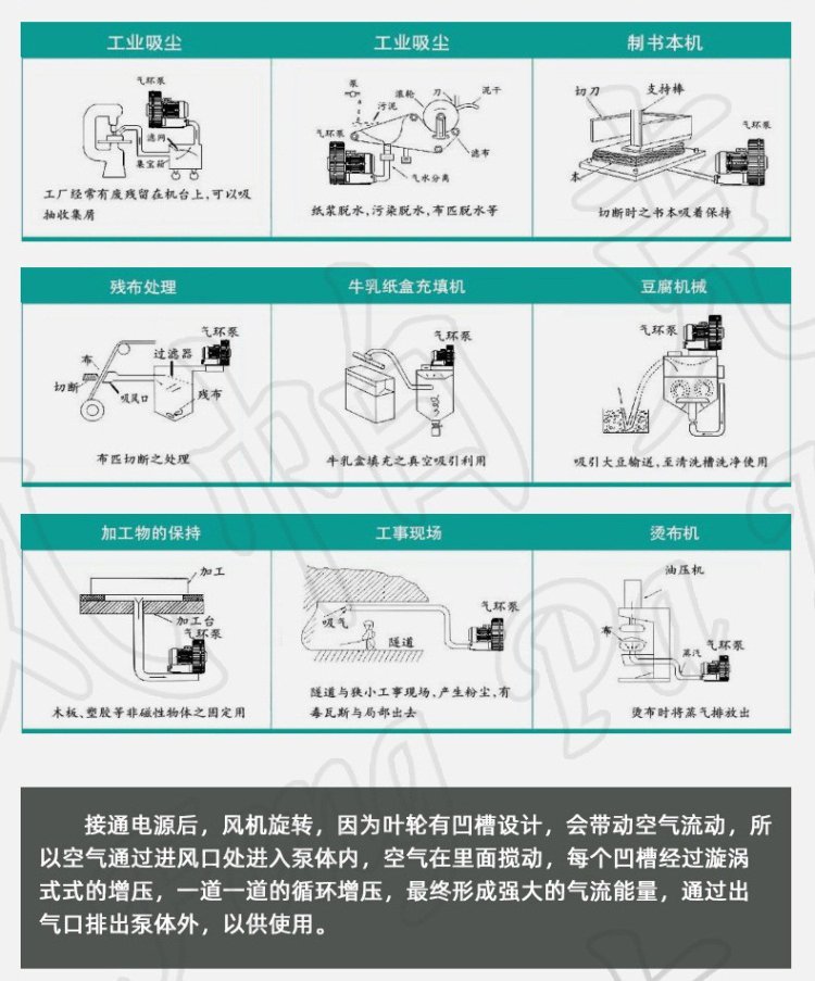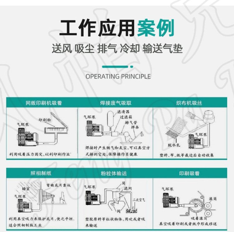 功能描述 | 可用于网版印刷机吸着、焊接废气吸取、织布机吸丝等 | ||