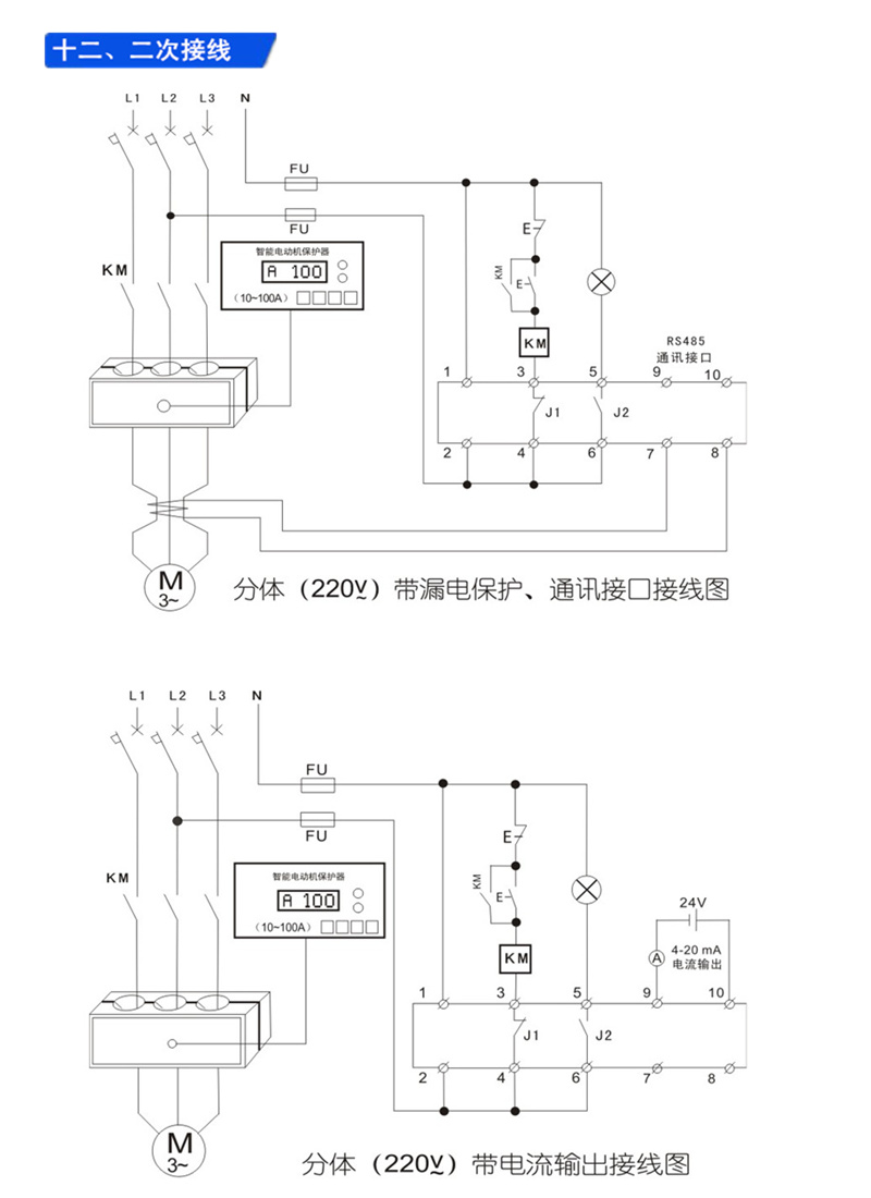 KMB-Y电动机智能监控器采用RS485通讯接口设计,保证了与上位机通讯的快速可靠,同时能快响应上微机的实时查询等要求并执行相应操作。KM106对电机运行状态和故障原因监控记录极大方便了对电机维护计划的制定。对于每一个电机回路,需要配置独立的KM106来进行保护与控制。KM106标准的配置,完善的功能,大大简化了传统意义上的电机回路的维护,降低了设备维护成本。
