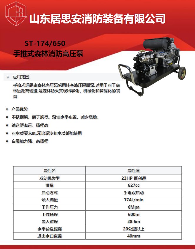 供应ST-174/650推车式森林消防高压泵并联消防泵马力大 品牌 | 居思安 | ||