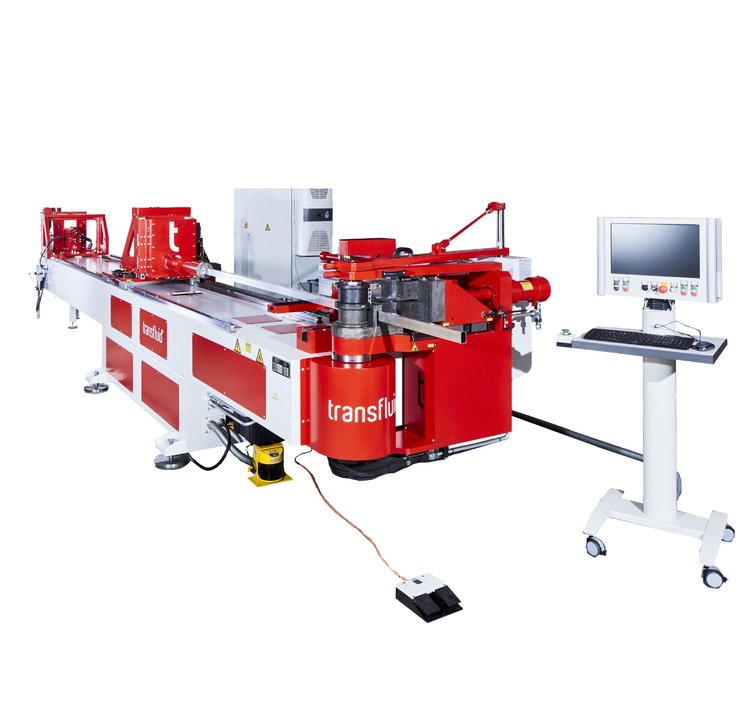 ?一、设备功能与用途:?该系列数控弯管机可以适用于各种材质金属管路冷弯成型,适用于航空航天,轨道机车,汽车制造,海工船舶,医疗卫生,家居产品等各行业的各种流体管件的折弯成型与型材的折弯成型,二、标准机型弯曲机头可以水平方向定位,可选旋转方向定位更换不同弯曲模层,?三、纯电动数控弯管机,无液压系统四、可选配置弯曲机头旋转轴,实现左右方向双向折弯,五、多层模结构的弯曲机头可以集成至少2层弯曲模具(根据不同管径有差异),可以用于不同的弯曲半径,或直线段较短的复合结构的模具,或集成不同管径的模具以便减少换模时间,标准机型模层最大调整高度60mm(模层之间中心线高度)六、模层之间弯曲半径最大差1.5*D七、管端夹具采用半分体式结构,对于在弯管之前管端处理过的也可以适用,可以避免夹伤管端,如管端的螺纹或各种成型结构八、含大行程随动压力模装置,Y轴送料小车可以送料至接近弯曲模的位置,减少管件末段直线段长度要求www.tema-hydra.comwww.transfluid.com.cn??