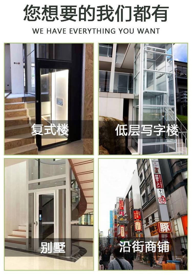 家用电梯主要分为牵引式电梯,螺杆式电梯和液压电梯这几种结构,家庭房屋的结构决定了选择家用电梯应该采用无机房电梯,因为家庭没有多余的空间来安置电梯的机房,所以选用我公司设计生产的家用小型液压电梯是比较实用的。