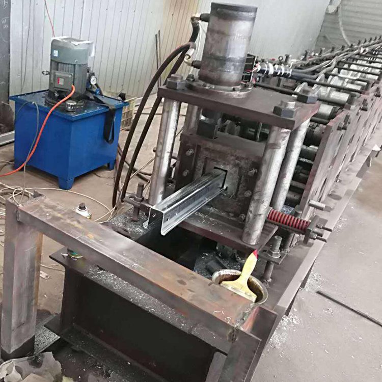 几字钢机器是一套轧辊可同时生产多种规格几字型檩条成品的单卷成型机组。由被动装料架、整平装置、冲孔装置、成型后切断装置、液压站、电脑控制系统等。