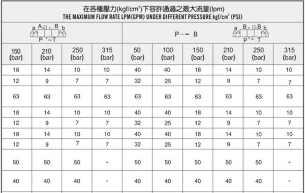 1.特优的浸油式电磁动作设计 推杆浸于系统中的油内动作,具有缓冲作用,即使在高压力,高频率的切换动作之下,仍可平稳无声。 浸油式的滑芯,完完全消除了可动部位的油封于滑柱椎杆之间的摩擦及其所引发的漏油问题,并可以增加滑柱的 推力。 2.能源利用效率高,降低使用成本 由于阀体流到采用特殊结构设计,因而内部阻抗小,可减少内部压力损失,使能源效率提高,并且符合节省能源 的潮流。 3.降低油温提高寿命,节省维修费用 由于内阻抗小,使压力降减少,液压油的温度亦相应降低,使液压油不易变质,液压油寿命延长,减少液压油更 换费用,机器本身亦不会因为受到热量之影响而导致加工精度之误差甚至变形。 4.可使用于高压力之应用(315bar) 采用特殊材质与设计,可使用于315bar以下之工作压力,增加了应用范围,在使用于低压时,寿命更增加。 5.特殊线圈,保用安全 电磁线圈的固定螺帽具有特殊防松设计,可防范因机器产生之共振而发生电磁线圈脱开。附加低冲击电压型之电 磁线圈,可确保电气系统的安全性。 6.电气安装防水,防尘性优良 电气接线方式,有接线盒和插式接线座两种,均具有指示灯。 电气接线盒及线圈外形均具有严密的防水性和防压性。 7.高品质 经过自动测试检验设备100%之检验,以确保高而稳定之品质。 8.安装简便 阀体固定螺丝均采用外接式,可简便阀体之拆装。 电气接线空间大,安装配线容易。