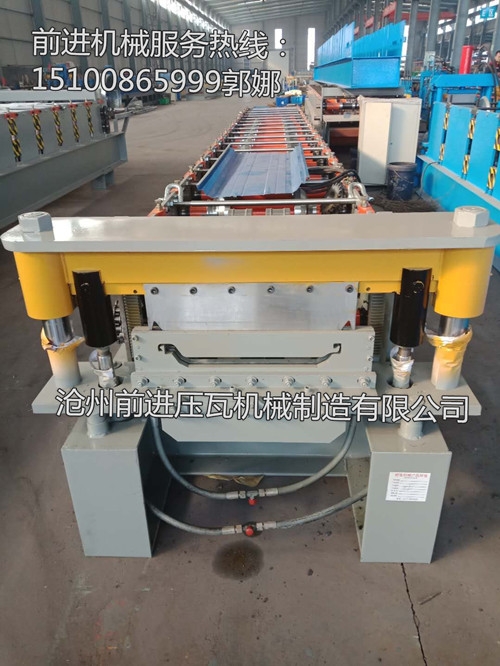 820型角驰压瓦机*不锈钢板820型角驰压瓦机是更新传统屋面螺钉安装换代产品,该机主要由手动放料架,放料架支座,进料导入平台,压型主机,成型剪切装置,液压站,电脑控制箱等几部分组成。该机生产的压型板解决了常规系列的屋面渗漏问题,压型板连接打破了传统屋面用螺枪连接的惯例,安装方法采用180度揽口咬合安装,使屋面防水效果更好。