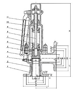 带扳手弹簧微启式安全阀外形尺寸和连接尺寸: