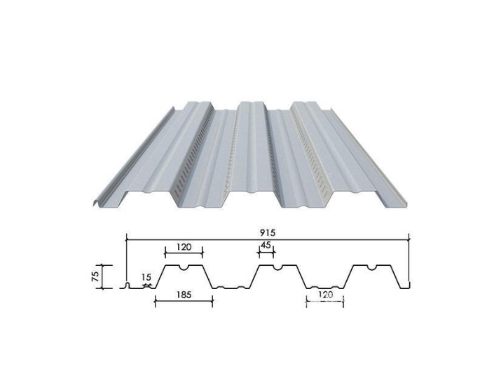 915型楼承板机生产的钢楼承板形状简洁,波度大,强度高,安装时铺置焊接钢筋网后与混凝土观场浇灌组合,粘合性好,在高层建筑上既可以省去钢模板,又可以减轻楼层承载,在达到同等承受能力的前提出,使工程用钢量减少,从而节省投资.
