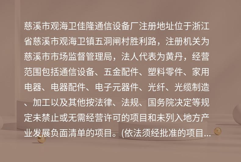 商铺名称:慈溪市佳隆通信设备有限公司