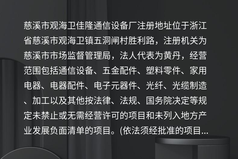 商铺名称:慈溪市佳隆通信设备有限公司