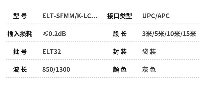 单芯单模FC光纤尾纤12芯束状尾纤接口类型UPC/APC 型号 | ELT-SFMM/K-LC-LC-3 | ||
