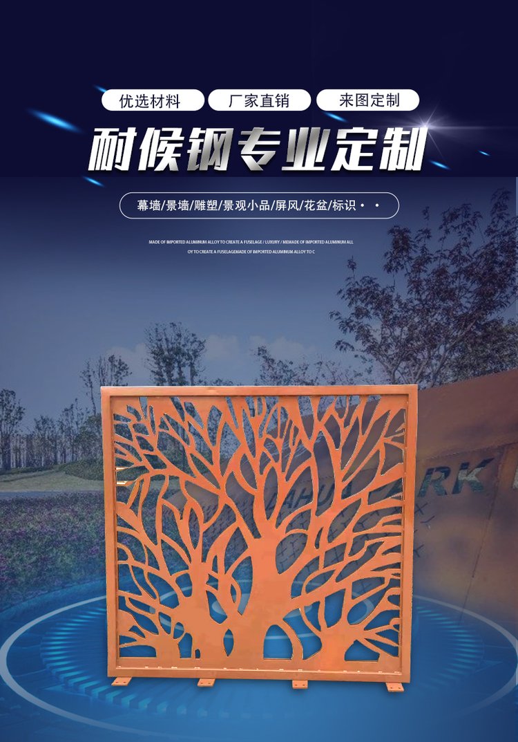 出口用烤漆复古铁艺屏风耐候钢幕墙山水景墙汉鼎激光穿孔铁锈板