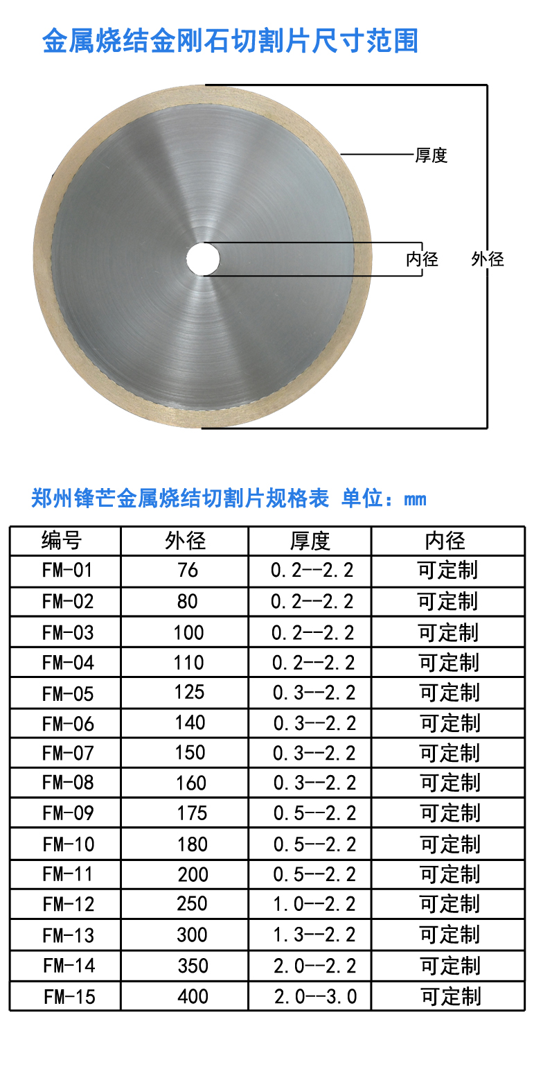 青铜烧结特种陶瓷超薄切割片氧化铝金刚石锯片可大切深锋芒