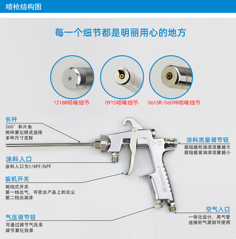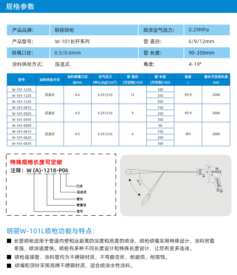 定制明丽W-101L长杆喷枪管道内壁360度片角加长杆手动油漆喷涂枪
