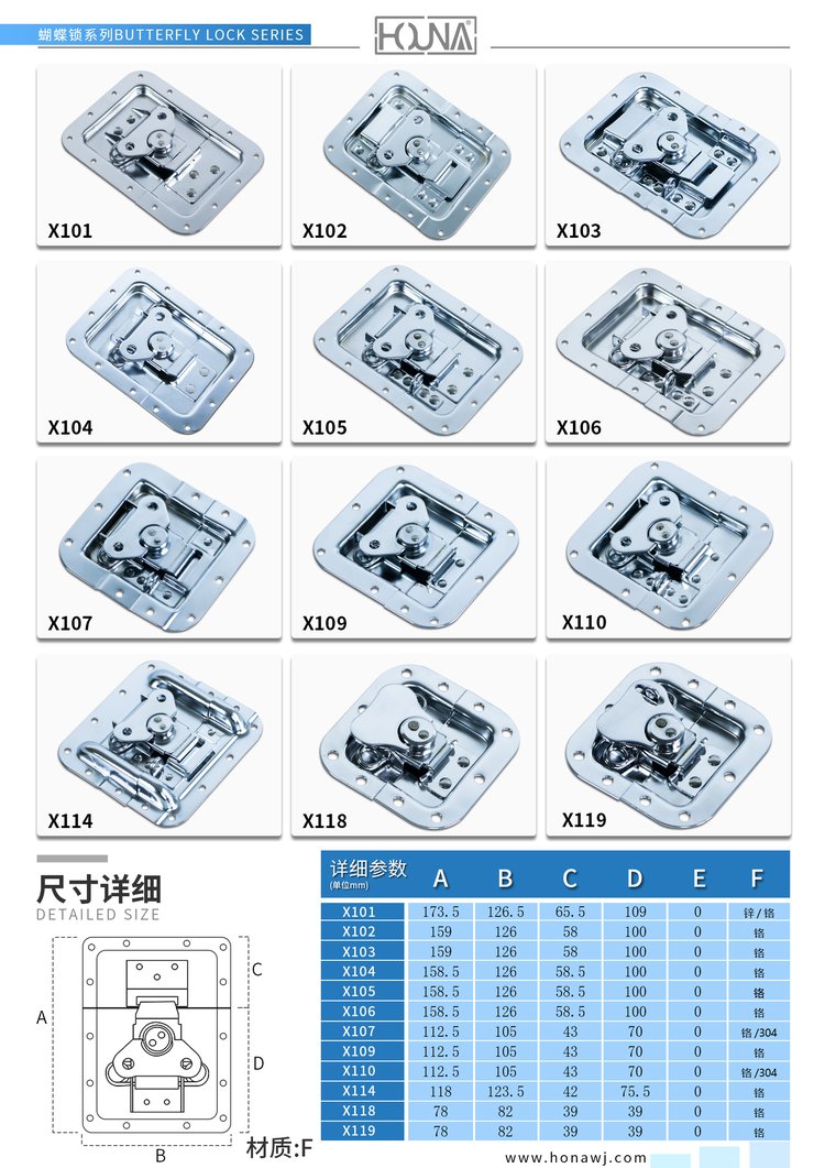 HOUNA/华纳 木箱蝴蝶扣 包装箱搭扣 蝴蝶箱扣航空箱箱扣 蝴蝶锁扣 野战户外箱搭扣 o型扣锁 X201环保锌 随州