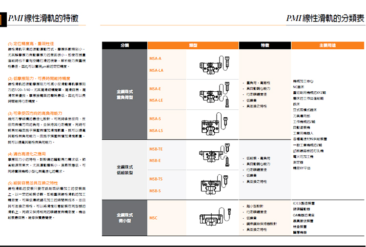 PMI\/AMT银泰直线导轨滑块轴承MSA\/MSB15S-N202530354555E-N