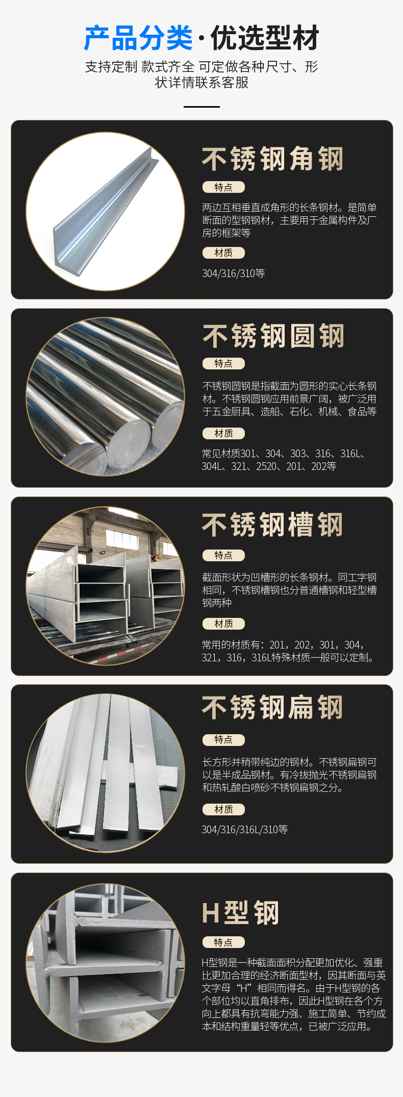 2205不锈钢槽钢304H型钢现货316L工字钢钢构件310S扁钢钢板切割