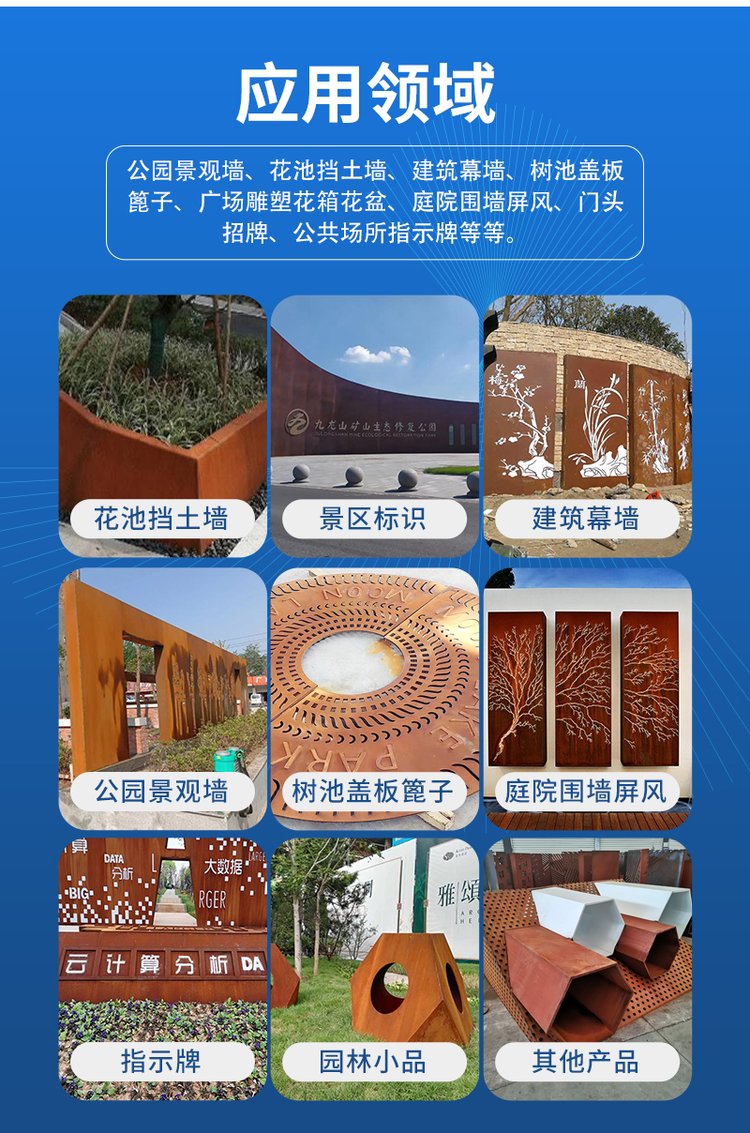 镂空红锈板复古景墙锈钢板树篦子可出口氟碳漆耐候钢屏风