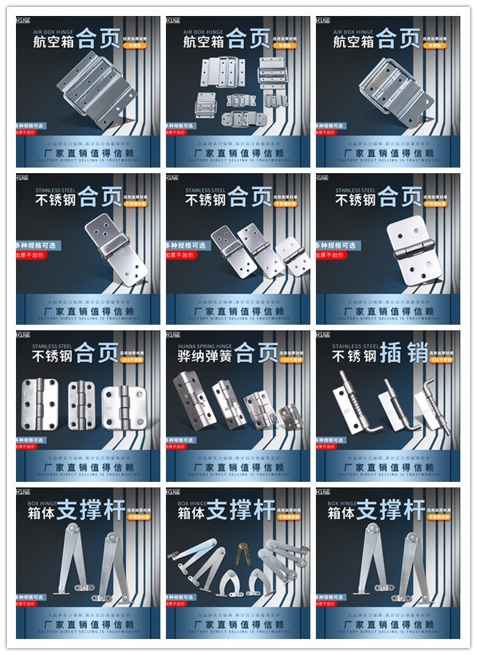 1000多款工业合页、液压铰链、箱体合页、船舶合页、扣供您选用,咨询可提供CAD尺寸图纸。量大从优,自有工厂,定制品也可咨询。