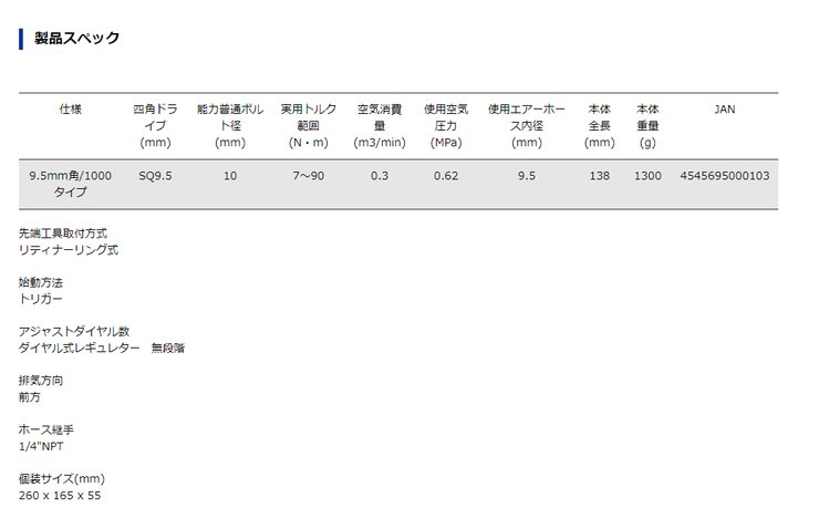 进气口尺寸 | 9.5mm | ||