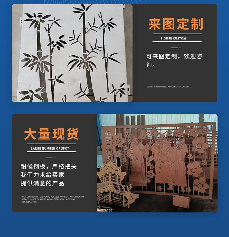 耐候钢板景观工厂红锈色锈蚀钢造型景墙复古镂空氟碳漆锈钢板