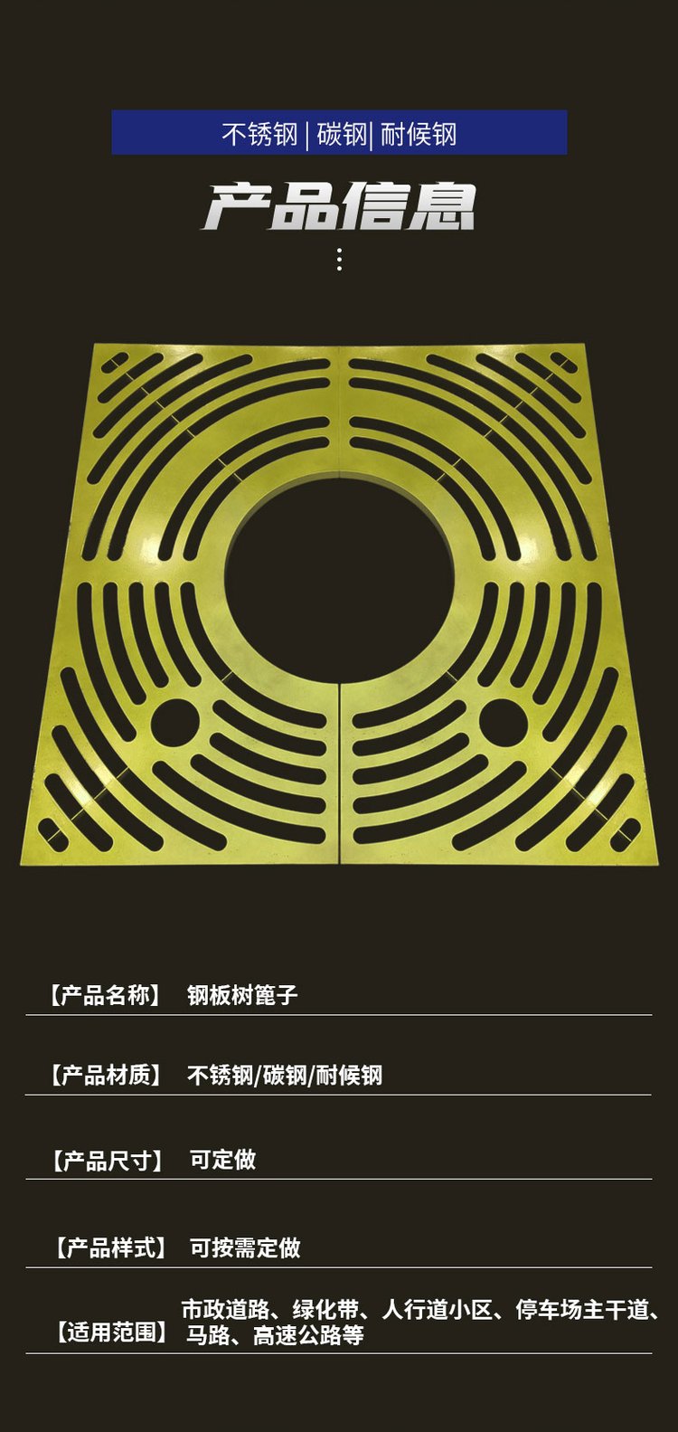 304不锈钢树池盖板激光镂空树篦子热镀锌碳钢护树板市政园林绿化