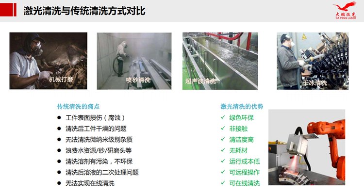 与机械摩擦清洗、化学腐蚀清洗、液体固体冲击清洗、高频超声清洗等传统清洗方法相比,激光清洗具有明显的优点。