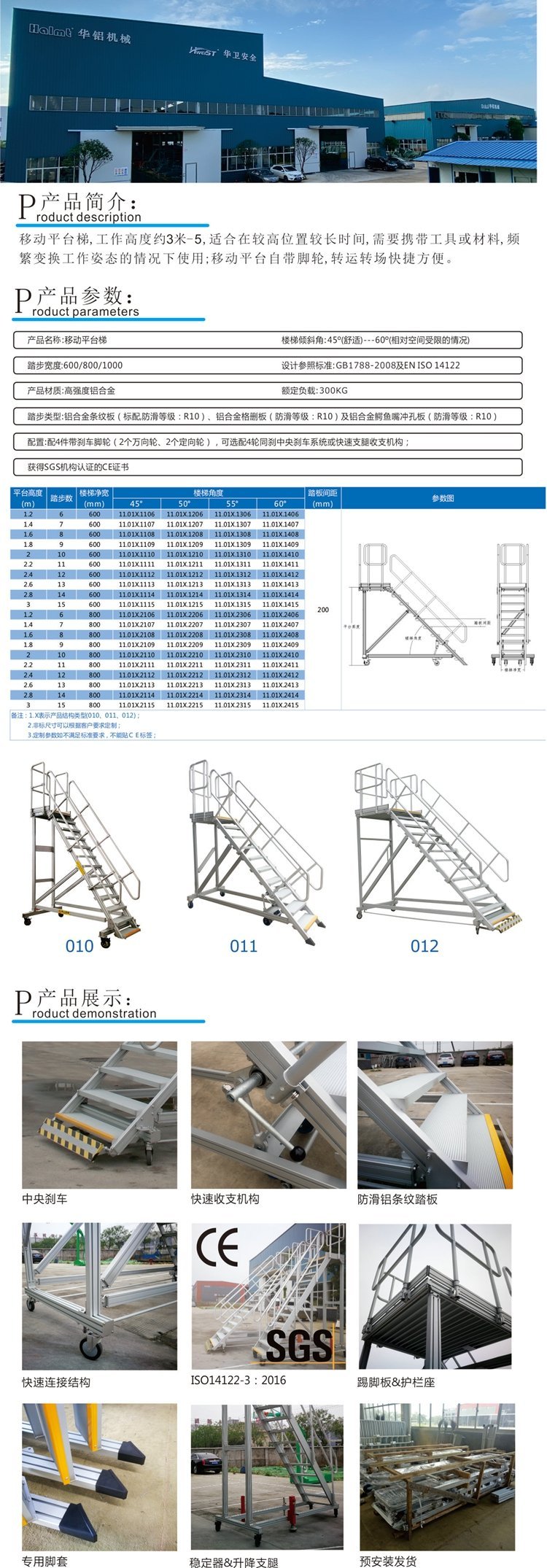Halmt定制铝合金移动平台梯组装式工业梯台安装高空作业平台