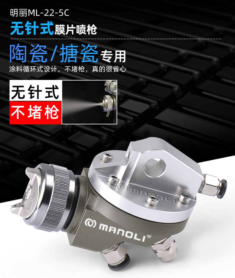 明丽ML-22-5C陶瓷喷枪搪瓷釉玻璃研磨材料喷涂用无针式膜片喷漆枪