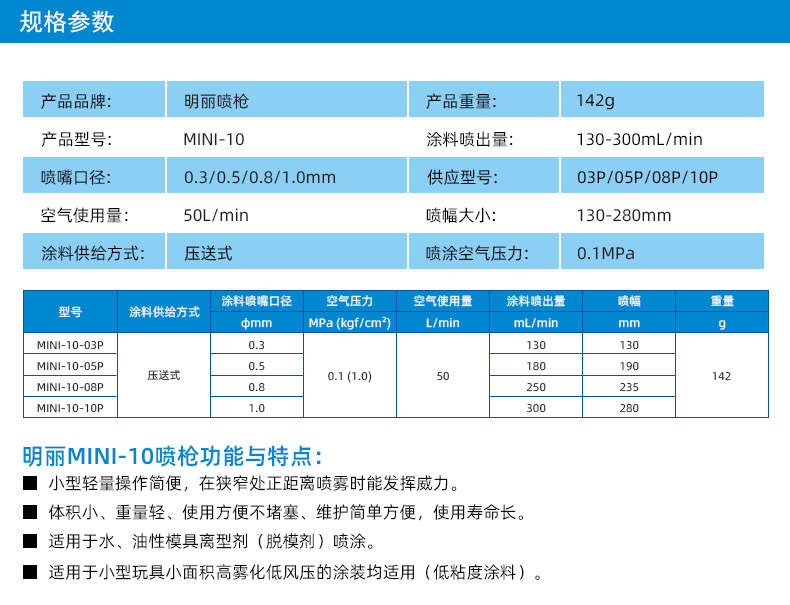 明丽MINI-10喷枪AF防指纹油水转印活化剂小型低压自动微量喷漆枪