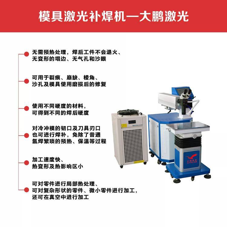 首先要了解模具缺陷的产生基本上是铸造过程中出现的沙眼、气孔:材料加工硬化和表面残余应力影响零件疲劳强度导致的裂痕:机加工过程中的失误导致的边、角缺损,划痕等几类因素造成。激光相对传统模具焊接的***大致和应用在其他行业的***类似,热影响小,加工件不易变形,准确度高,氩气保护后氧化率低,工件不变色,在修补模具小面积裂痕、崩角、飞边、复杂角度的沙孔等部位比传统的氩弧焊***明显。氩弧焊由于焊接热影响大这个先天的缺点导致儿乎不能焊接以上特点的缺陷,这方面激光是***的。但是由于机器机对氟弧焊的不灵活性,一些大型的模具并不适合激光焊,激光更多的用在修补大型模具的零部件和些手机、塑胶模具及类似其大小和精度的模具。往往一个很小的边角缺损以前要报废的用激光修补后可正常使用,几个焊点可挽回几万其至十几万的损失。所以这也决定了模具修补行业低投入高回报的特点。
