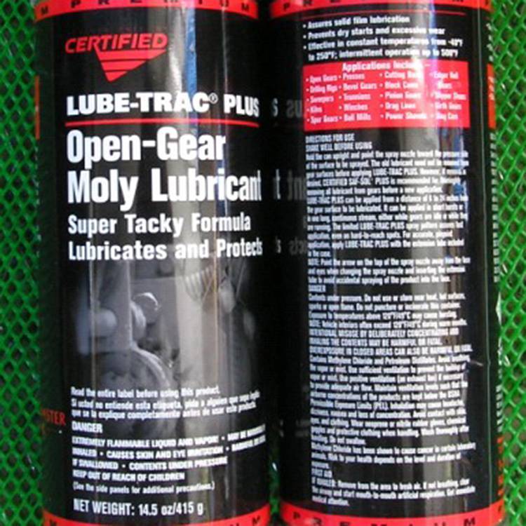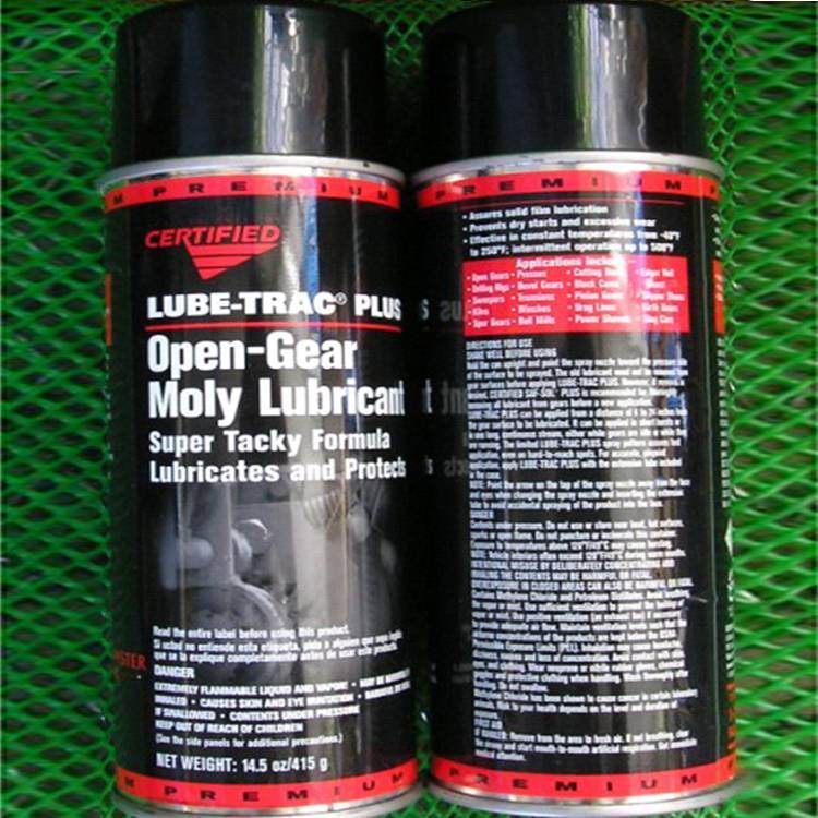 润力斯 LUBE-TRAC PLUS AEROSOL气雾型润滑喷剂。可迅速在开式齿轮表面形成力Z型钼极压润滑保护粘膜,防止齿面极压磨损,防止干启动。推进剂挥发后不滴落,使用温度0℃以下至260℃。可以渗透到链条的轴销之间,起到抗极压润滑作用。