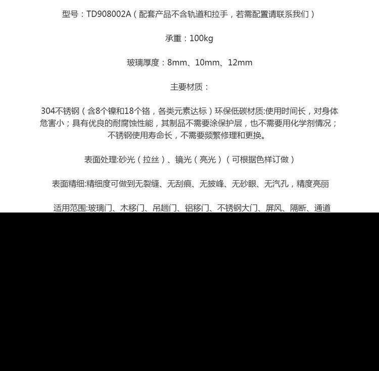适用范围 | 玻璃门、木移门、吊趟门、铝移门、不锈钢大门、屏风、隔断、通道 | ||