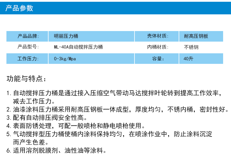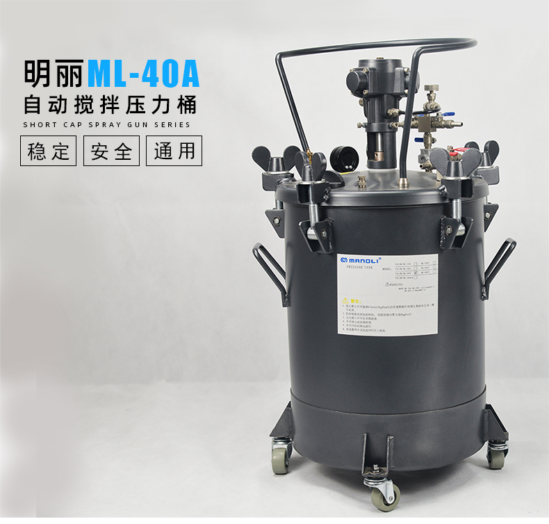 明丽自动压力桶 10L/20L/40L油漆胶水涂料喷涂全自动搅拌压力罐 型号 | ML-10A/20A/40A压力桶 | ||