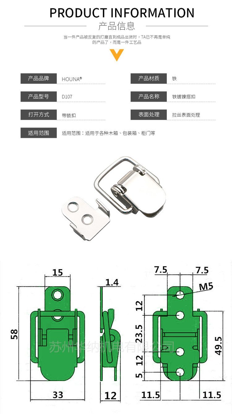 HOUNA华纳 扁嘴搭扣 不锈钢锁扣 仪器箱搭扣 弹簧搭扣箱体五金 D107