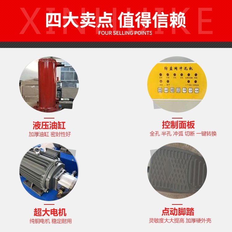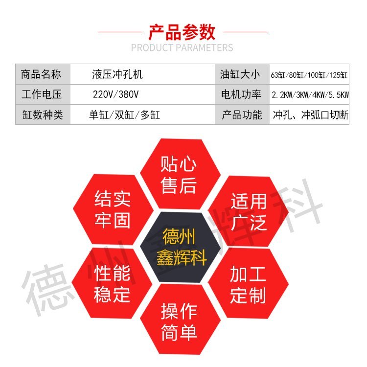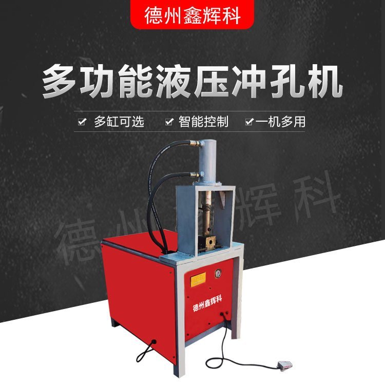 液压冲孔机主要用于防盗网、楼梯扶手、护栏、货架、铁管、各种鞋架、衣架、不锈(方管、圆管、菱型管)、锌钢、彩钢、铝合金等冲孔、冲弧等
