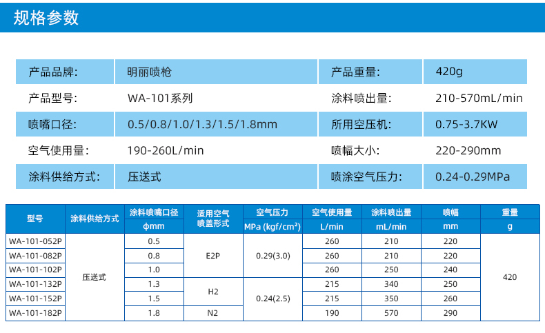 明丽耐磨损高雾化喷漆气动工具自动喷枪WA-101往复机地轨线专用