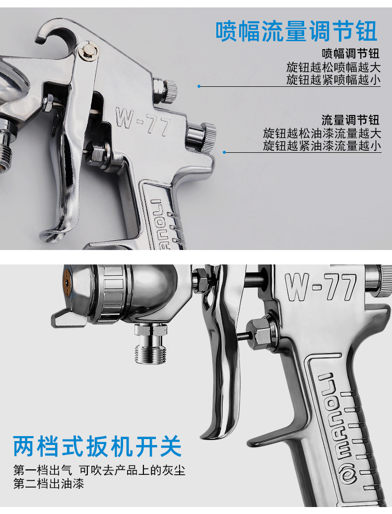 明丽W-77雾化喷枪大口径五金家具家电塑胶底漆色漆扇形喷涂喷漆枪