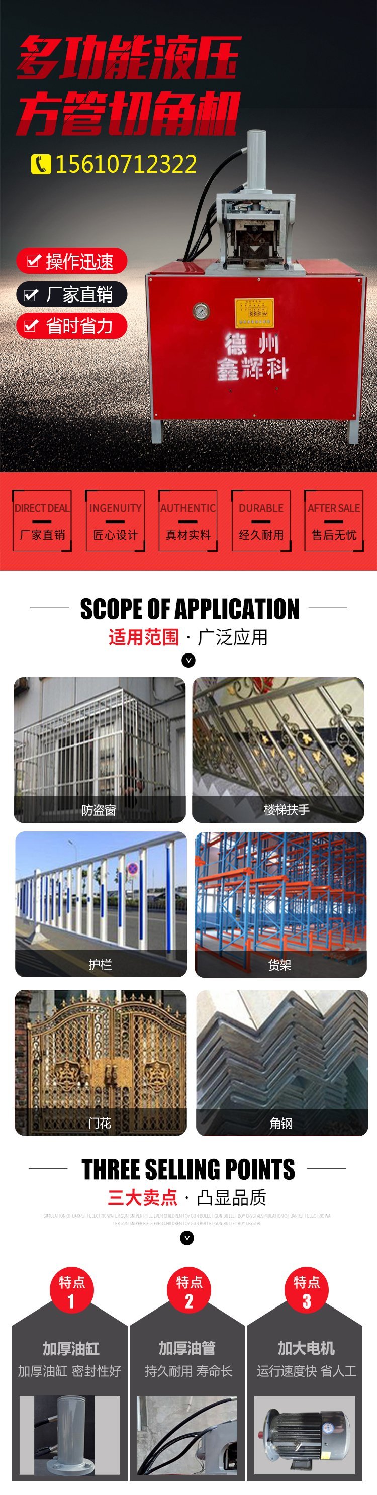 25方管双头切角机鑫辉科方管冲135度折45度方管切角设备