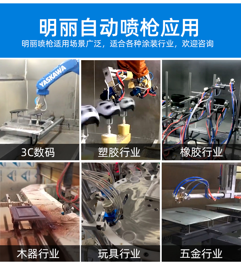 适用范围 | 家具、玩具、瓶子、皮革、家电等自动喷漆 | ||