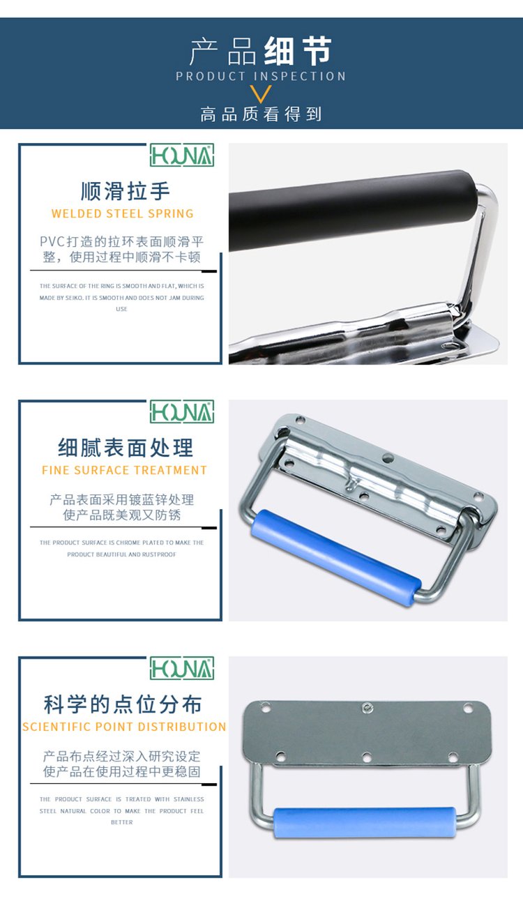 HOUNA华纳环保蓝锌镀铬五金把手航空箱弹簧拉手木箱提手