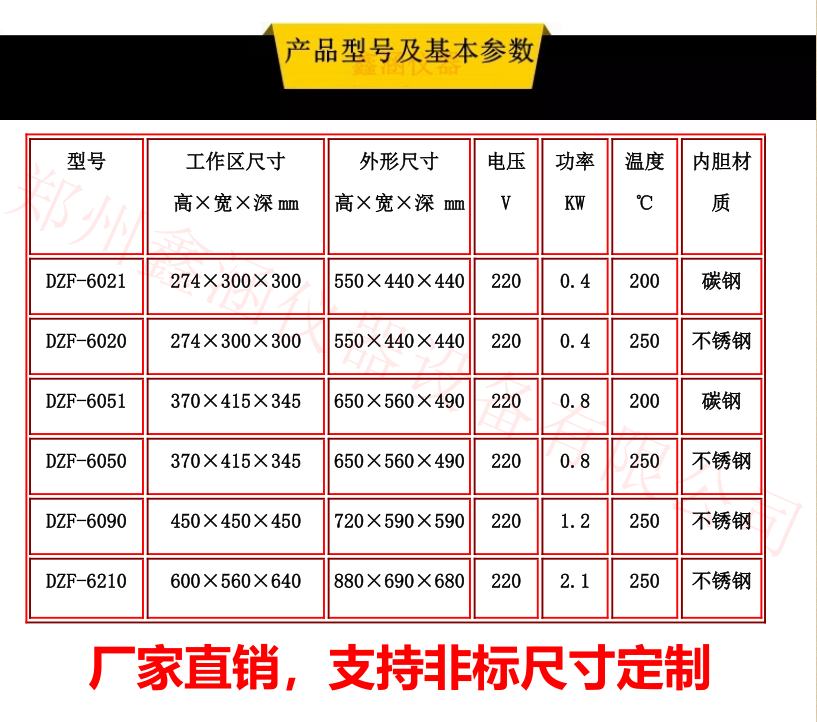 • 规格:DZF-6020-碳钢内胆-274*300*300mm