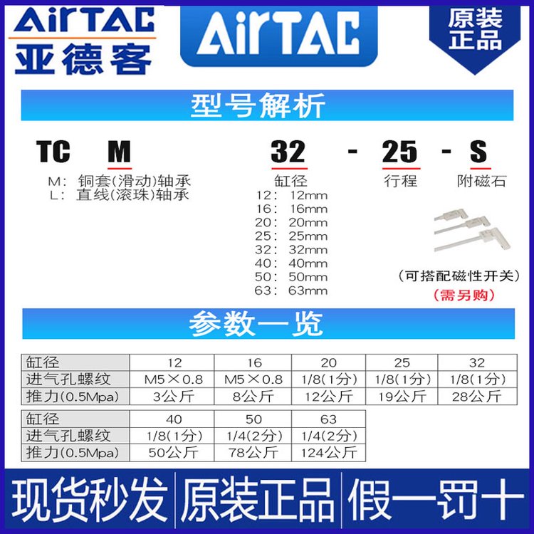 原装耐用正品TCM16X60S亚德客迷你三轴三杆带导杆系列耐用气动工具