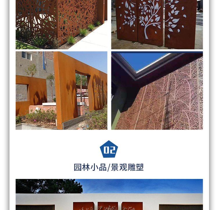 耐候钢幕墙复古景观屏风雕刻树篦子钢构花池灯箱镂空耐候锈钢板