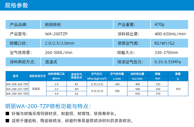 功能用途 | 搪瓷釉 陶瓷釉喷涂 研磨剂等涂料喷涂 | ||