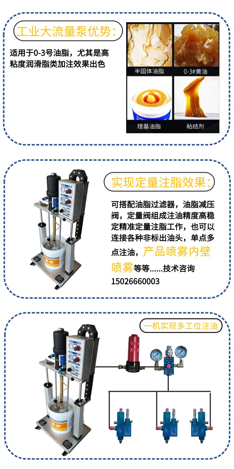功能用途 | 工业油品德输送定量注脂 | ||